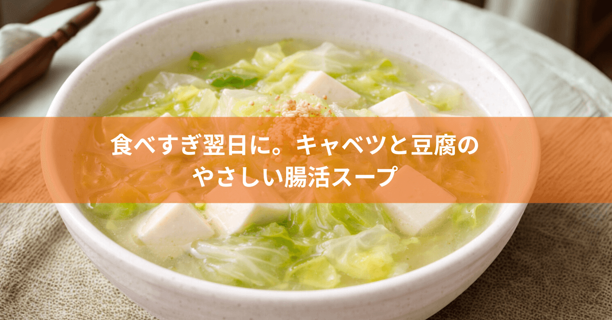 今回は、食べ過ぎリセットに効果的な「キャベツと豆腐のやさしい腸活スープ」のレシピを紹介します!