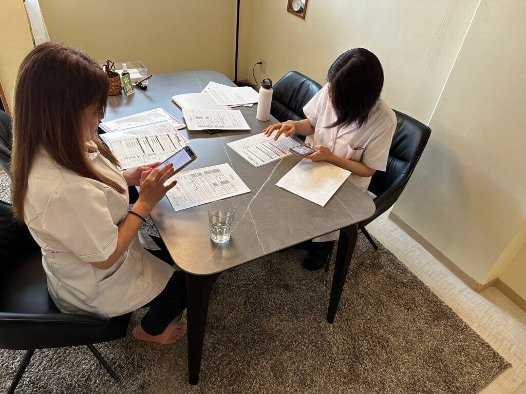 出勤後、スタジオ内清掃、スケジュール確認、お客様のカルテ準備をします。